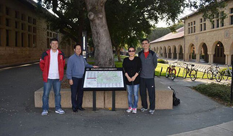 蓝湾科技与中国工程院院士、北京化工大学校长谭天伟(左)团队合作 蓝湾科技与上海交通大学教授、美国斯坦福大学博士傅磊(右二)团队合作